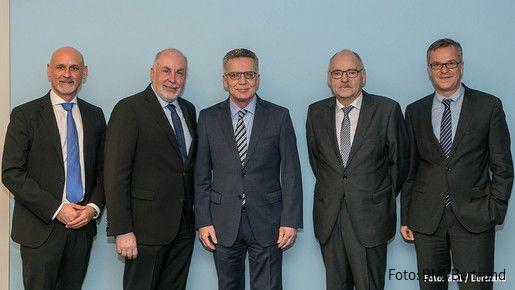 De Maizière und Staatssekretär Hans-Georg Engelke hießen den dbb Bundesvorsitzenden Ulrich Silberbach, dbb Vize und Fachvorstand Beamtenpolitik Friedhelm Schäfer sowie den stellvertretenden dbb Bundesvorsitzenden und Fachvorstand Tarifpolitik Volker Geyer im Bundesinnenministerium willkommen und gratulierten den drei hauptamtlichen Mitgliedern der dbb Bundesleitung zu ihrer Wahl.