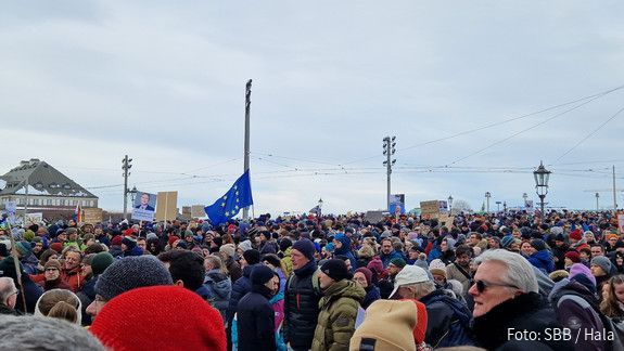 Am 21. Januar 2024 demonstrierten Hunderttausende in ganz Deutschland gegen rechts. In Dresden haben sich Beschäftigte aus DSTG und SBB beteiligt, unter ihnen Manja Kropp.