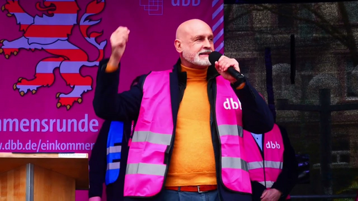 Die Beschäftigten fordern 10,5 Prozent mehr Bezahlung, mindestens aber 500 Euro mehr. Volker Geyer, dbb Tarifchef und Verhandlungsführer, erklärte auf der Kundgebung in Wiesbaden am 13. März 2024 den aktuellen Stand der Verhandlungen: „Wir mussten uns in den vergangenen Gesprächen wieder und wieder die gleichen abgenutzten Argumente anhören – nämlich, dass die Kassen leer seien und man sparen müsse.“ Im öffentlichen Dienst zu sparen bedeute aber entweder, die Leistungen, die die Bürgerinnen und Bürger erwarten und auf sie vertrauen, zu drosseln, oder eben die Beschäftigten schlechter zu bezahlen. Geyer machte deutlich: „Ein starker öffentlicher Dienst, der mit den aktuellen Herausforderungen mithalten soll, verdient auch eine Bezahlung, die mit den aktuellen Herausforderungen mithält. Die Arbeitgeber dürfen den öffentlichen Dienst nicht weiter kaputtsparen. Stattdessen sollten sie die Attraktivität des öffentlichen Dienstes sowohl für bestehende Arbeitskräfte als auch für Interessierte steigern. Und das geht eben nur mit einer besseren Bezahlung“. Das Land Hessen habe in den vergangenen Gesprächen bereits erste Bewegungen in Richtung der Beschäftigten gemacht. „Diese kleinen Schritte reichen uns jedoch nicht“, betonte Geyer, „wir erwarten, dass uns die Arbeitgeberseite in der dritten Verhandlungsrunde ein verhandlungsfähiges Angebot vorlegt.“ Die dritte und entscheidende Runde findet am 14. und 15. März in Bad Homburg statt.
