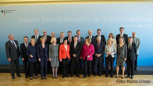 Zum Zweiten Demografiegipfel hatte Bundesinnenminister Hans-Peter Friedrich ins Berliner Congress Center eingeladen. Auf dem Treffen stellte Bundeskanzlerin Angela Merkel erste Ergebnisse und Handlungsansätze der Arbeitsgruppen vor, die sich auf dem Ersten Demografiegipfel im Oktober 2012 konstituiert hatten. Sie beschäftigen sich mit den Themen „Familie als Gemeinschaft stärken“, „Selbstbestimmtes Leben im Alter“, „Allianz für Menschen mit Demenz“, „Entwicklung eines nationalen Koordinierungsrahmens zur Sicherung der Daseinsvorsorge und Stärkung der regionalen Wirtschaftskraft“, „Motiviert, qualifiziert und gesund arbeiten“, „Mobilisierung aller Potenziale zur Sicherung der Fachkräftebasis“, „Ausländisches Arbeitskräftepotenzial erschließen und Willkommenskultur schaffen“, „Bildungsbiografien fördern“, „Der öffentliche Dienst als attraktiver und moderner Arbeitgeber“. Der dbb war in vier Arbeitsgruppen vertreten.