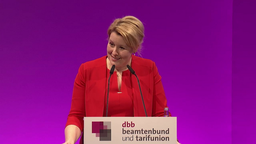In der anschließenden Diskussion betonte Giffey, dass politische Prozesse ausreichend Zeit benötigen. Demokraten bräuchten daher Geduld. Als Beispiel nannte sie das Klimapaket, dessen Milliarden nun bereitstehen, das aber erst noch umgesetzt werden muss. „Von dem bereitgestellten Geld ist noch keine Bahntrasse gebaut. Es braucht eine starke Verwaltung, die die entsprechenden Projekte entwickelt“, sagte die Ministerin. Daher sei Politik auch immer auf einen guten öffentlichen Dienst angewiesen.