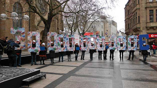 Mit einer Aufsehen erregenden Aktion haben Mitarbeiterinnen und Mitarbeiter der Steuerverwaltung am Vormittag des 27. Januar 2011 in der Dortmunder Innenstadt den Passanten vor Augen geführt, wie gigantisch 30 Milliarden Euro sind. Das ist der Geldbetrag, der unserem Gemeinwesen jährlich verloren geht, weil in Finanzämtern, bei Steuerfahndung und Betriebsprüfung akuter Personalmangel herrscht: Auf dem Platz vor der Reinoldi-Kirche wurden die Ziffern des Verlustes auf eine Bühne getragen und zu einer 20 Meter langen Reihe formiert.