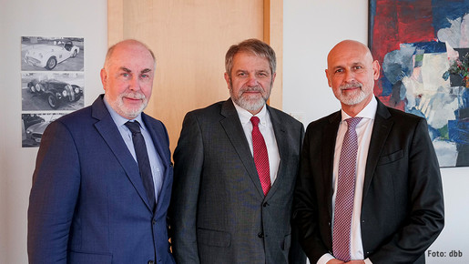 - v.l.n.r.: Ulrich Silberbach, dbb Bundesvorsitzender mit dem VKA-Präsidenten Ulrich Mädge und Volker Geyer, dbb Fachvorstand Tarifpolitik