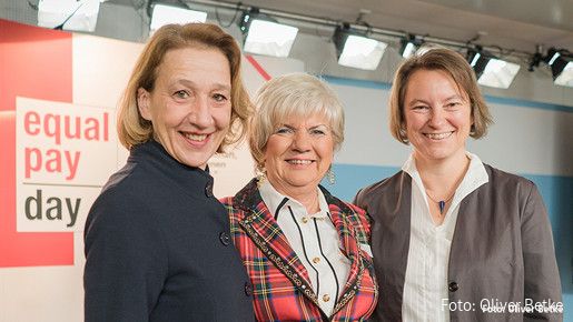 - Von links nach rechts: Transparent gewinnt: Uta Zech (Präsidentin BPW Germany e.V.), Helene Wildfeuer (Vorsitzende dbb bundesfrauenvertretung), Henrike von Platen (Fair Pay Innovation Lab) werben für transparente Entgeltstrukturen in der Privatwirtschaft und im öffentlichen Dienst.