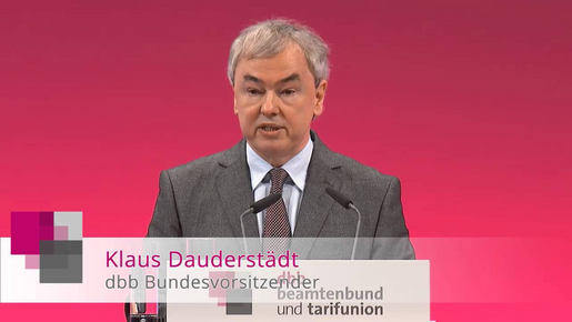 Mit Kritik an der Bundesregierung hat Klaus Dauderstädt, Bundesvorsitzender des dbb beamtenbund und tarifunion, am 12. Januar 2015 die 56. Jahrestagung seiner Organisation in Köln eröffnet: „Die Ablehnung des Bundesinnenministers, die Anerkennung von Kindererziehungszeiten bei der Rente auch systemkonform auf die Beamtenversorgung zu übertragen, ist ungerecht und inakzeptabel.“ Bei Verschlechterungen im Rentenrecht habe die Übertragung immer „prima funktioniert.“ Kaum werde aber einmal etwas Positives verkündet, „kommt die Übertragung plötzlich nicht mehr in Frage.“
